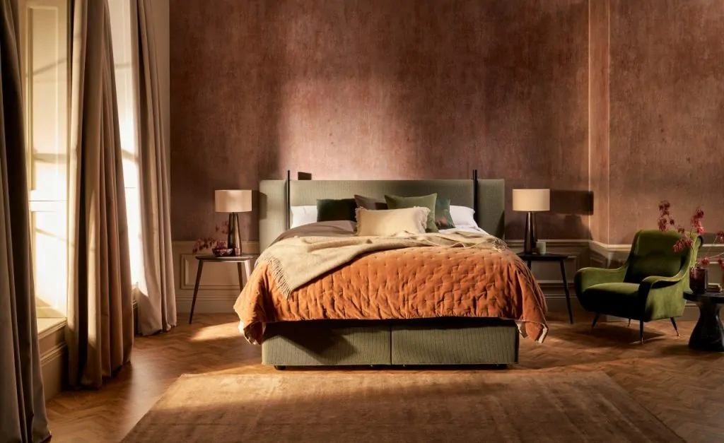 De Vispring boxspringcombinatie met Eccleston hoofdbord afgebeeld met Magnificence matras