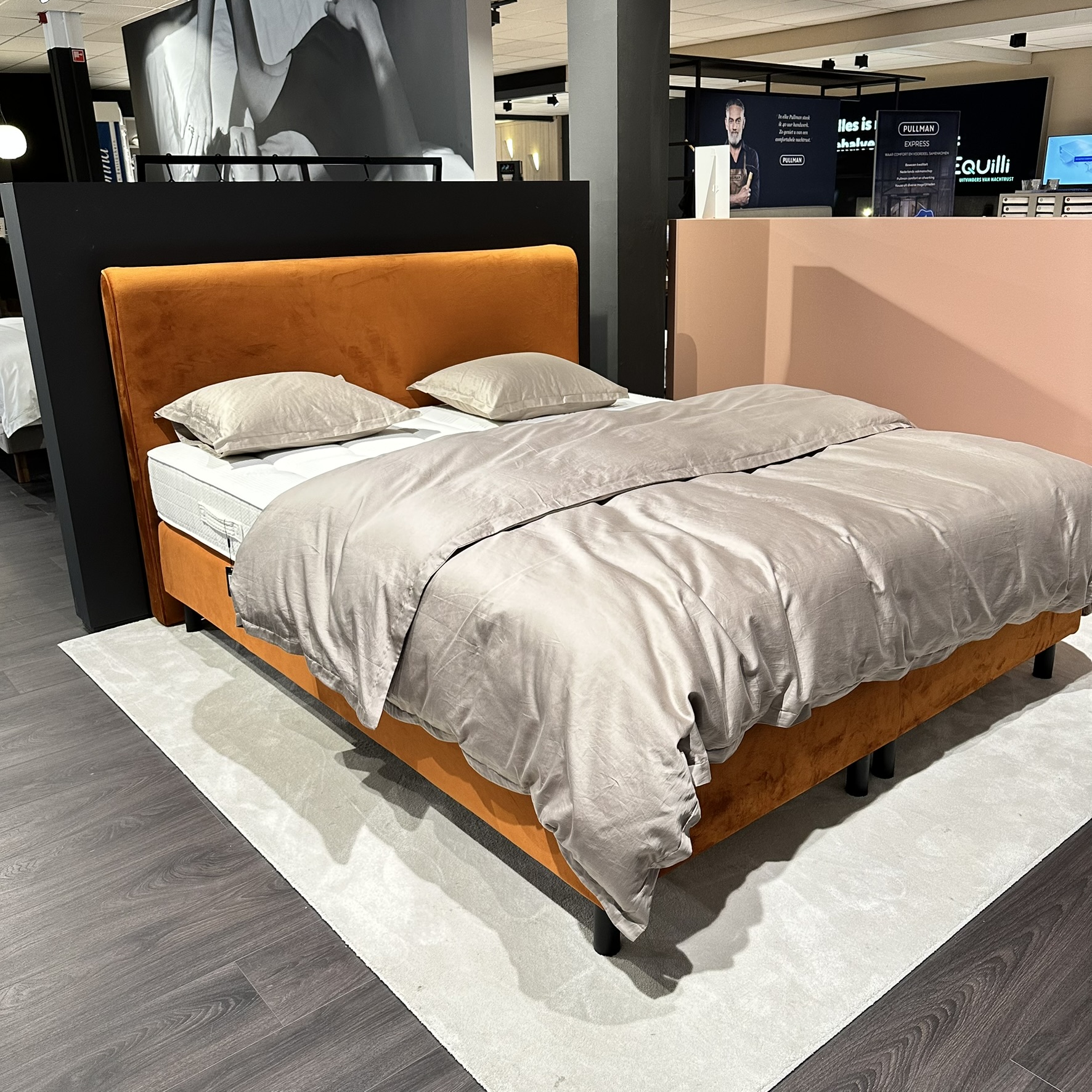 Het bed is in goede staat en biedt een uitstekende basis voor een comfortabele nachtrust.